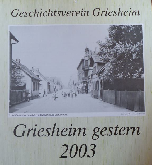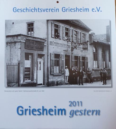 Seit 1999 geben wir jedes Jahr den Kalender "Griesheim in alten Ansichten" heraus. Der mittlerweile zur guten Tradition gewordene Wandschmuck findet nicht nur großen Absatz im Stadtteil, wir wissen auch von Sammlern dieser schönen Bildwerke in den U.S.A, Australien und Kanada. Sie haben die Möglichkeit, ältere Ausgaben des Kalenders bei uns zum reduzierten Preis zu erstehen. Es sind nicht mehr alle Jahrgänge vorhanden, und von manchen gibt es nur noch wenige Stücke.
